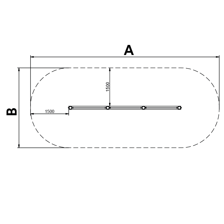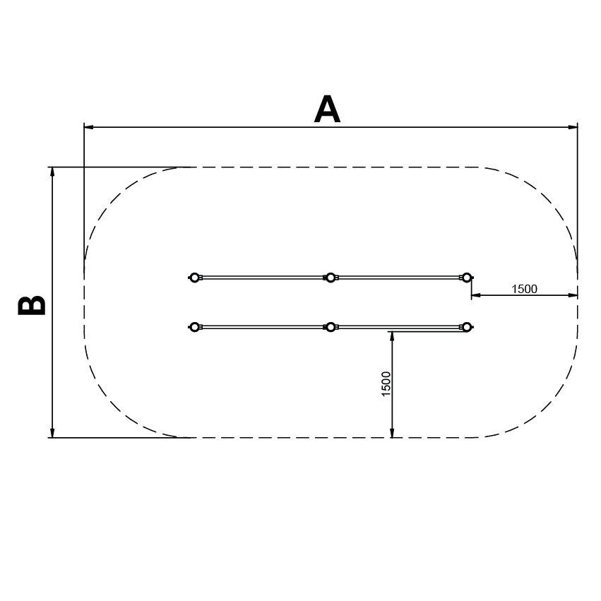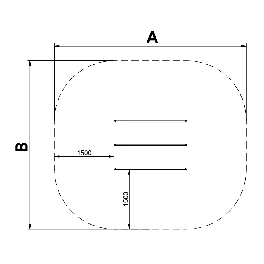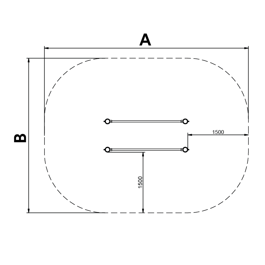 Barras para flexiones a tres alturas diferentes, 350, 860 y 1360 mm y de 40 mm de diámetro