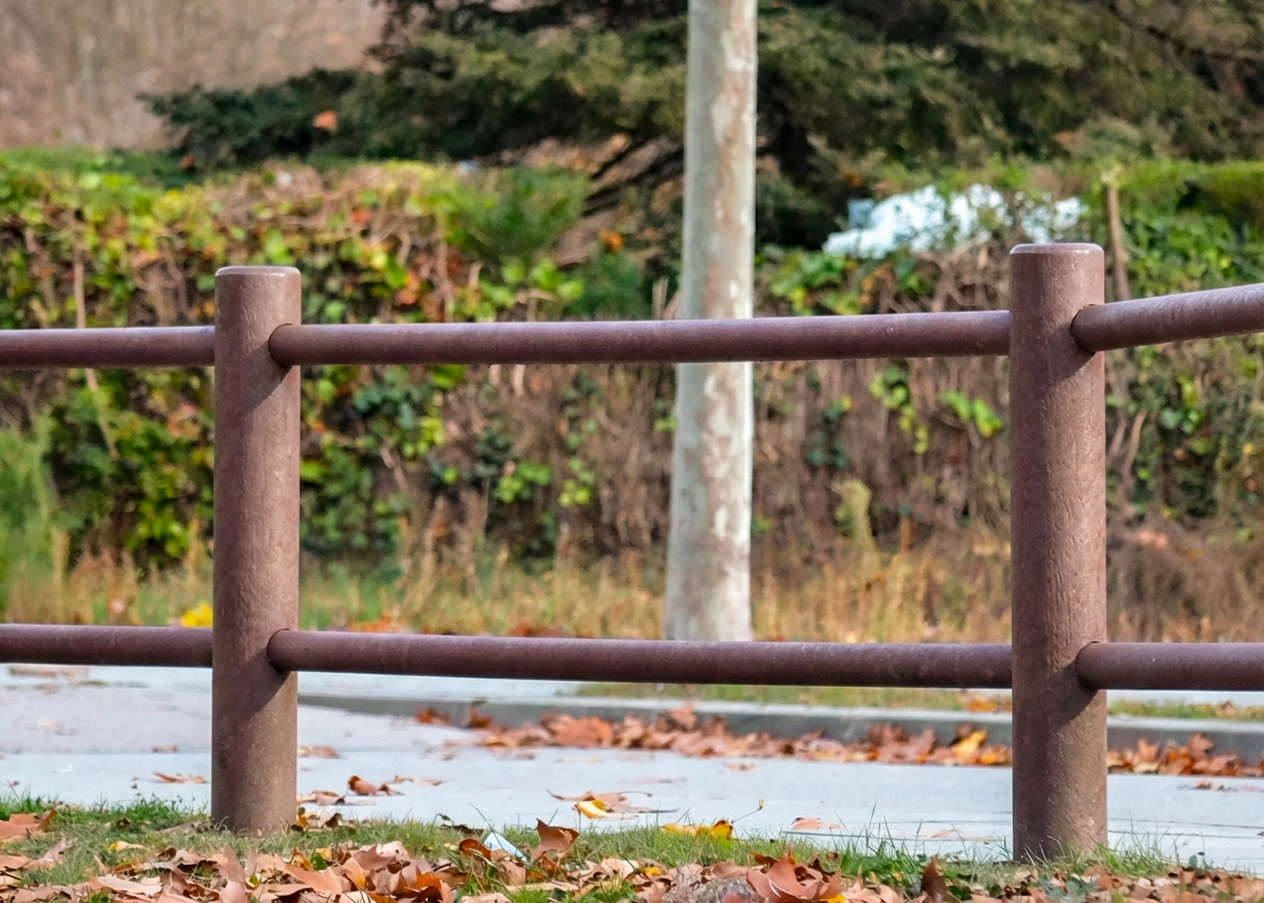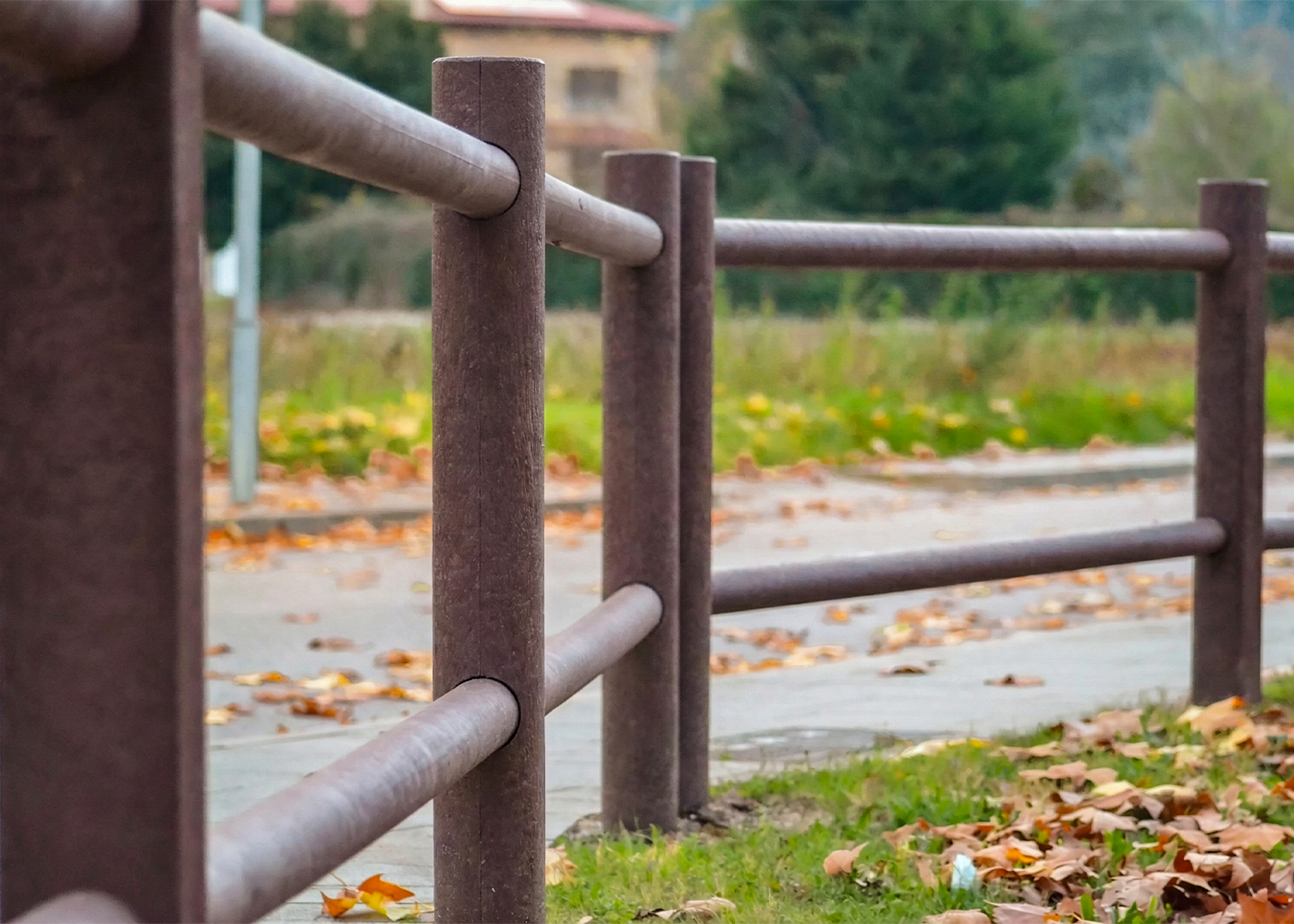 Valla RURAL PR de, medidas totales (largo x alto) 2250x1500 mm, fabricado en plástico ReBnew (el polímero reciclado de BENITO que está producido íntegramente a partir de envases del contenedor amarillo y no requiere ningún tipo de mantenimiento), compuesta por un posteØ150x1500 mm y dos travesaños Ø80x2225 mm. Anclaje sobre superficie preparada de hormigón, según superficie y proyecto.