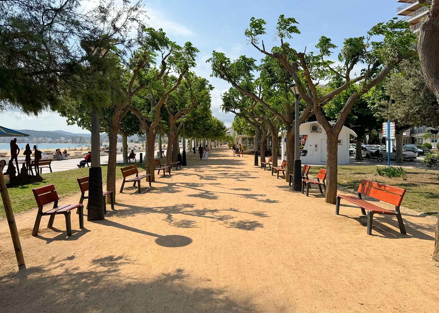 Banco de diseño DELTA XXI de, medidas totales (largo x alto x profundo) 1700x835x685 mm, fabricado con pies de fundición dúctil (tratados con el proceso Ferrus el protector de triple capa para el hierro, que garantiza una óptima resistencia a la corrosión) . Acabado imprimación epoxi y pintura poliéster en polvo color gris martelé. Cuatro tablones de madera tropical natural (tratados con recubrimiento de triple capa Lignus, protector fungicida, insecticida e hidrófugo). Tornillería de acero inoxidable. Preparado para anclaje con pernos de expansión M10 según superficie y proyecto.