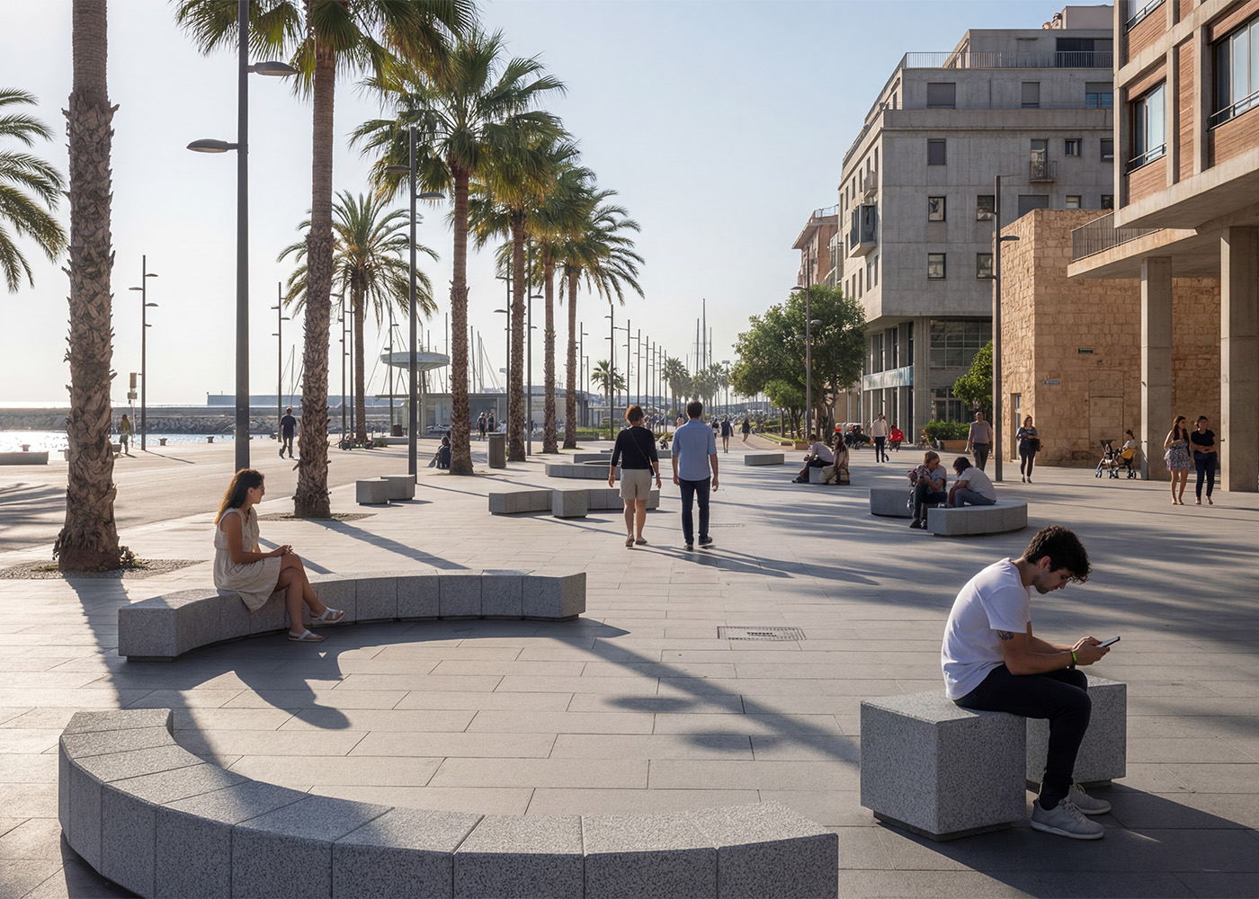 Silla de diseño KUBE KURVE 500, medidas totales (largo x alto x profundo) 500x450x500 mm, fabricado con prefabricado de hormigón color gris granítico de aspecto rugoso y tablones de madera tropical natural (tratados con recubrimiento de triple capa Lignus, protector fungicida, insecticida e hidrófugo). Se puede colocar en elementos aislados o en grupos. Apoyado sobre superficie preparada, por su propio peso.