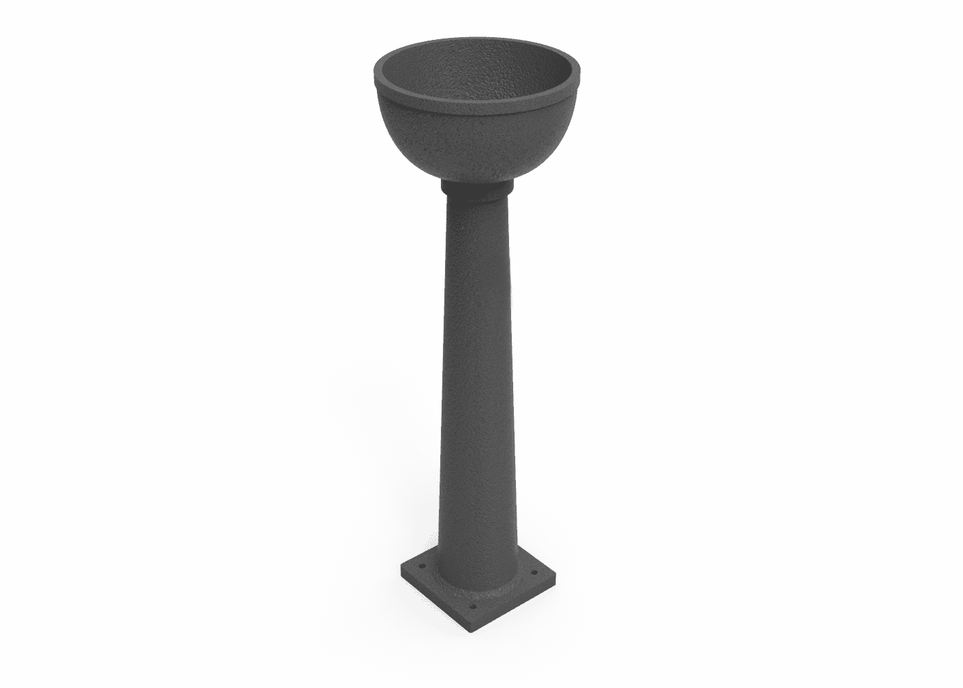 Fuente FONTI, medidas totales (Ø x alto) 310x985 mm, fabricada en fundición (tratado con el proceso Ferrus el protector de triple capa para el hierro, que garantiza una óptima resistencia a la corrosión), con pulsador lateral. Preparada para anclaje con 3 pernos de expansión M8 según superficie y proyecto.