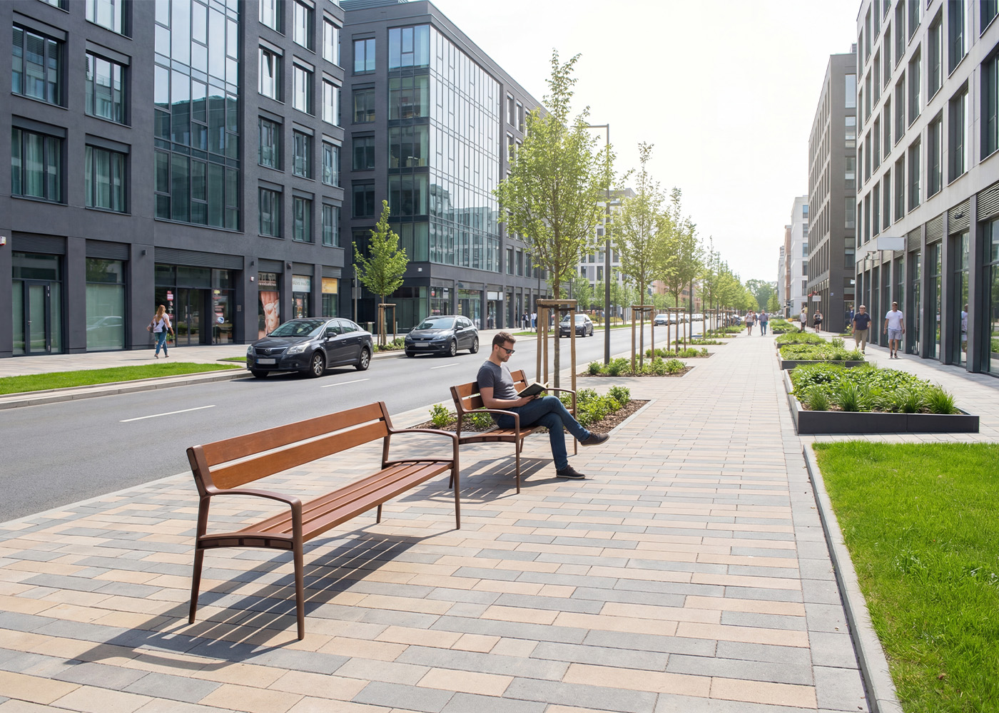 Banco de diseño MINSK de, medidas totales (largo x alto x profundo) 1800x820x590 mm, fabricado con pies de fundición dúctil (tratados con el proceso Ferrus el protector de triple capa para el hierro, que garantiza una óptima resistencia a la corrosión). Acabado imprimación epoxi y pintura poliéster en polvo color marson. Cinco tablones de madera tropical natural (tratados con recubrimiento de triple capa Lignus, protector fungicida, insecticida e hidrófugo). Estructura de fundición de diseño envolvente, para proteger la fijación del tablón ante posibles impactos. Tornillería de acero inoxidable. Preparado para anclaje con pernos de expansión M10 según superficie y proyecto.