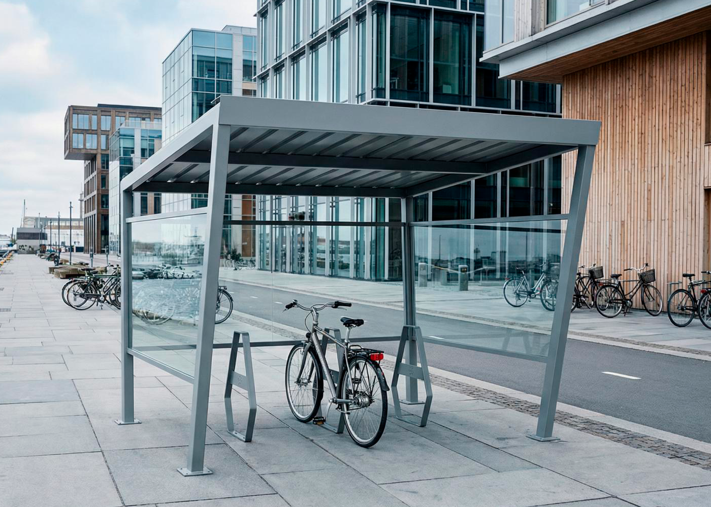 Aparcabicicletas modular BOX de alta seguridad para una bicicleta con opción de añadir plazas a medida que se combinan los módulos individuales.