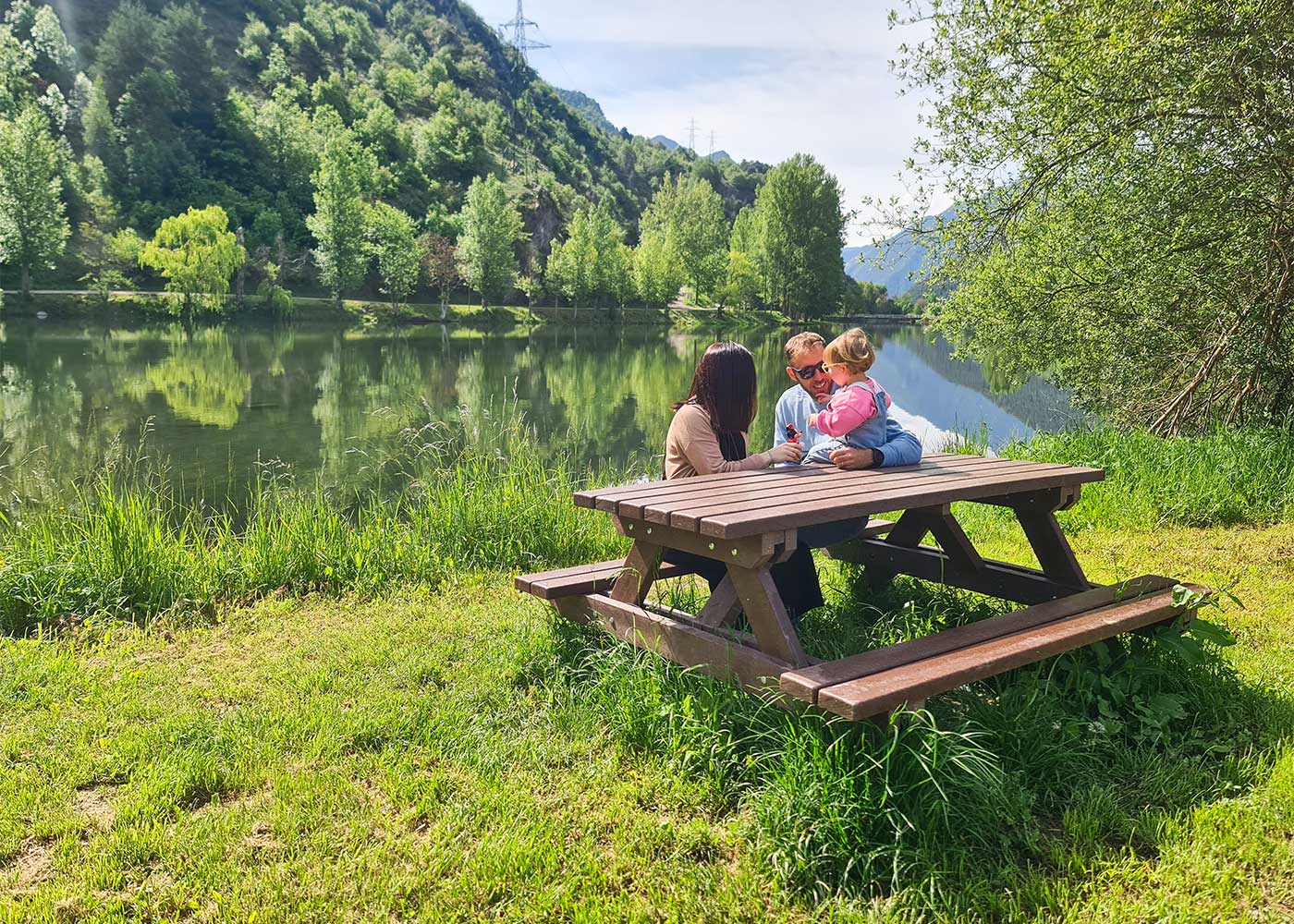 En la Guingueta d'Aneu, mesas de picnic ReBnew y el parque infantil Artic ofrecen diversión a niños y tranquilidad a adultos, promoviendo un ambiente familiar en armonía con la naturaleza.