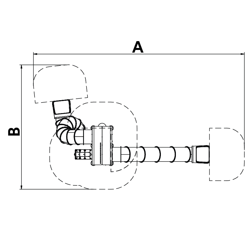 Estructura multijuego de gran formato compuesta por: Tobogán tubo espiral 3,4m. Tobogán tubo 2,5m. Banco. Claraboya. Túnel superior. Túnel inferior. Juego móvil ESPIRAL. Juego LABERINTO. Juego panel simulador MICRÓFONO. Juego móvil TERMOMETRO. Juego móvil MAREO giratorio desde interior. Juego móvil ENERGIA desde interior .Juego móvil ENGRANAGES. Juego móvil NÚMEROS. Acceso mediante escalada o trepa de cuerda. Acceso mediante rampa curvada con barras. Panel rejilla en todos los niveles, transparencia total.
