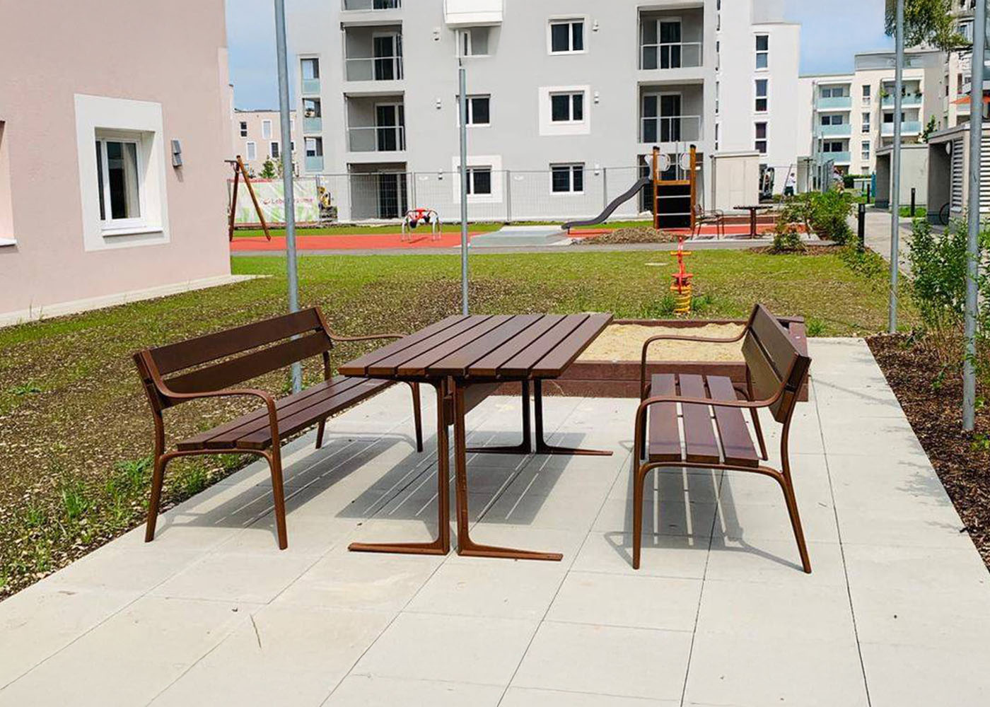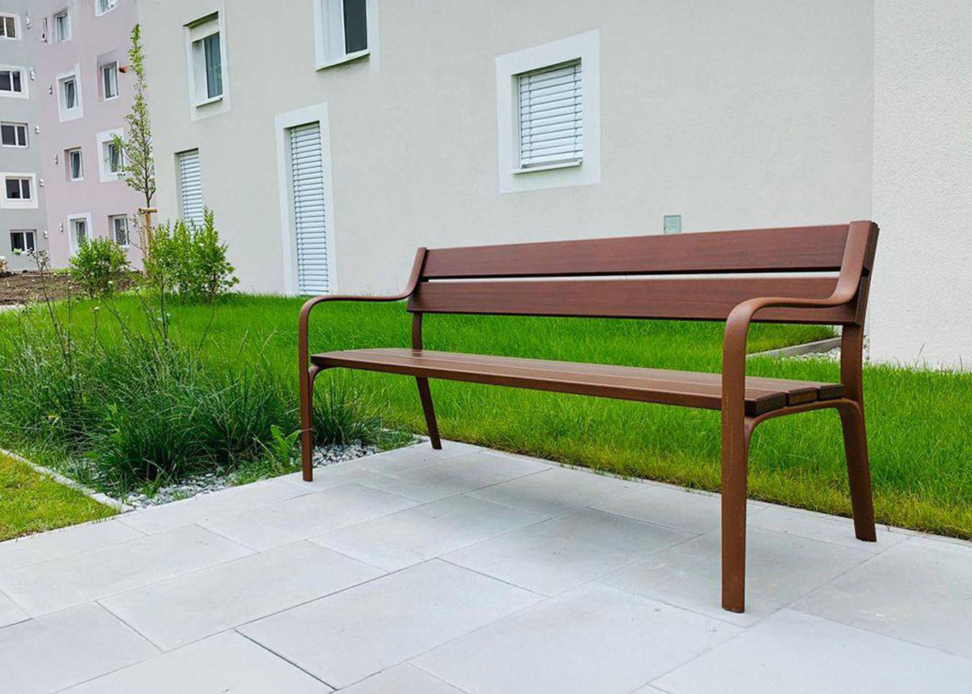 El banco Citizen, diseñado por Eugeni Quitllet, fue el elegido para amoblar los espacios exteriores de un nuevo complejo residencial en Austria.