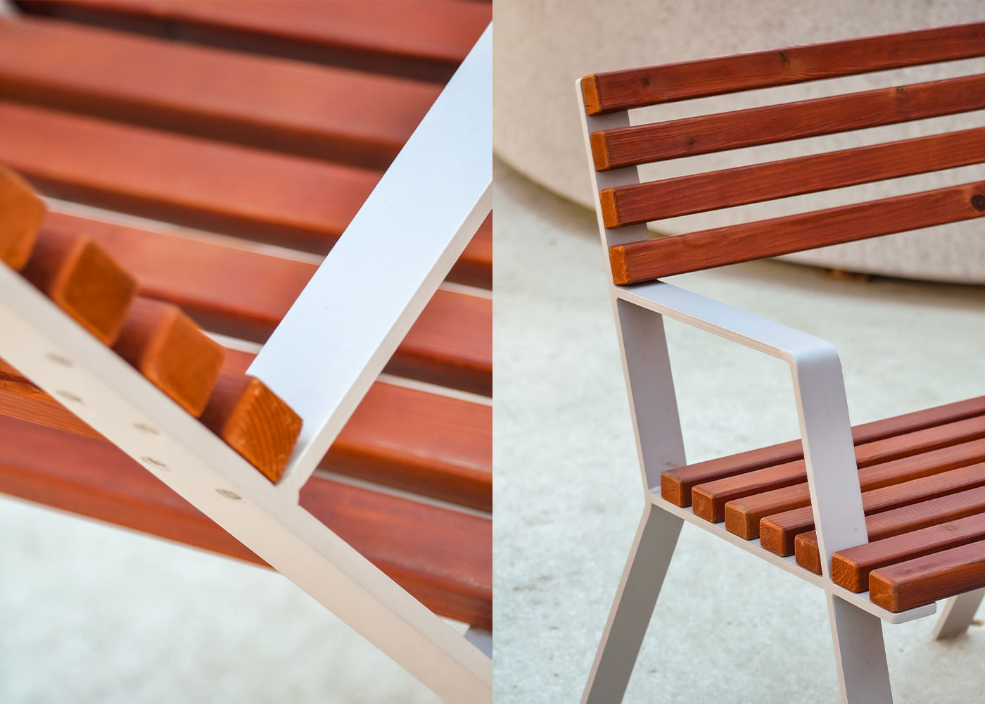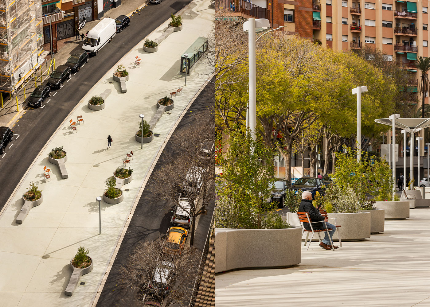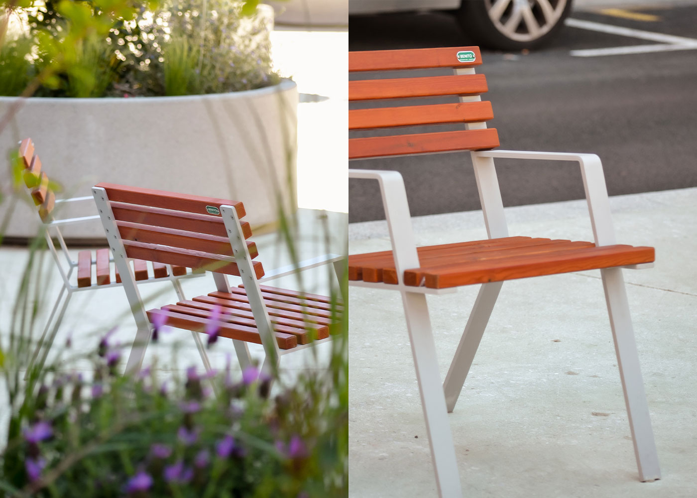 En este contexto, BENITO URBAN ha participado en la incorporación de mobiliario urbano en colaboración con Fabric Studio Arquitectes, donde la silla VERMUT, de diseño especial, adquiere un papel protagonista como elemento de uso cotidiano.