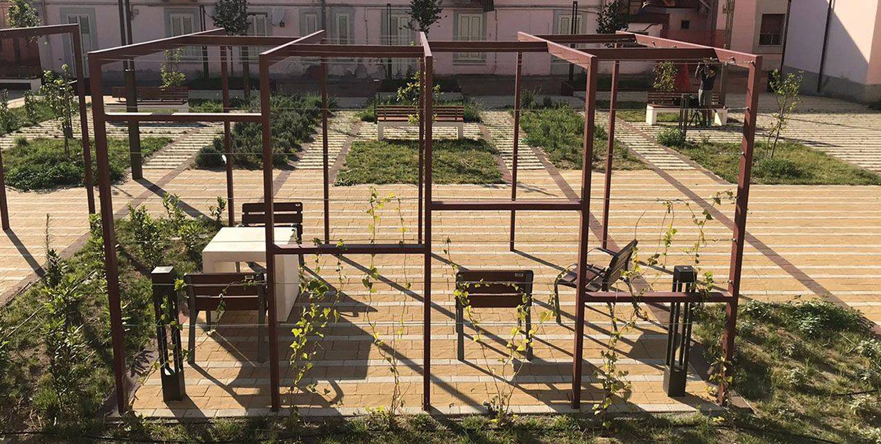 Finalizada la remodelación arquitectónica de la Plaza de Tremulini, acondicionada con bancos y sillas NeoBarcino de BENITO.