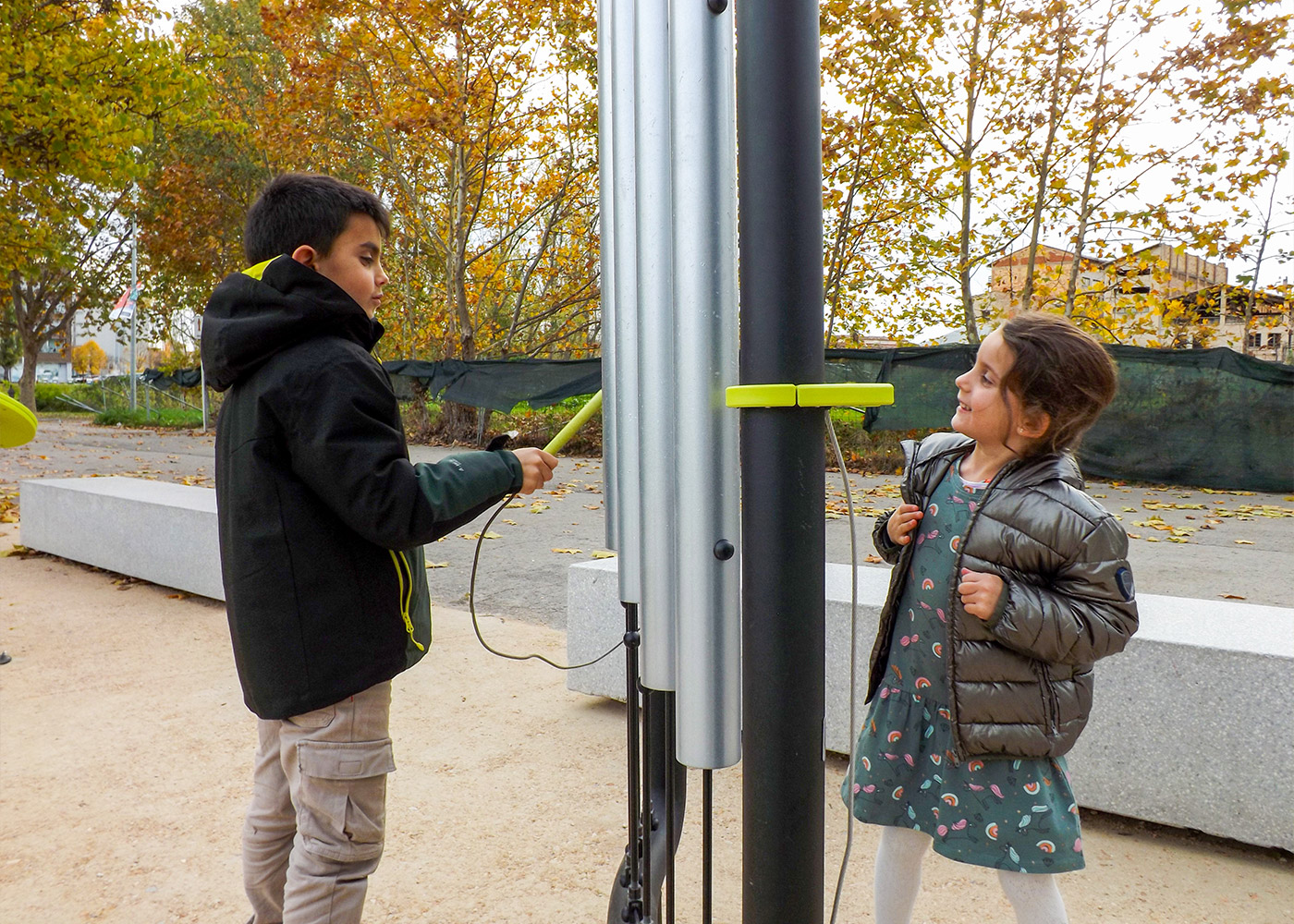 En Vic, frente al complejo cultural L’Atlàntida, se han instalado cinco elementos musicales urbanos para que los niños descubran la música jugando: Xilo, Mambo, Samba, Conga y Salsa.