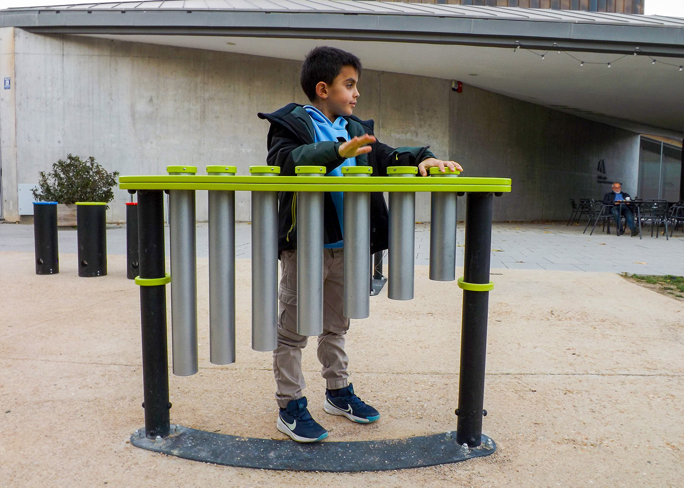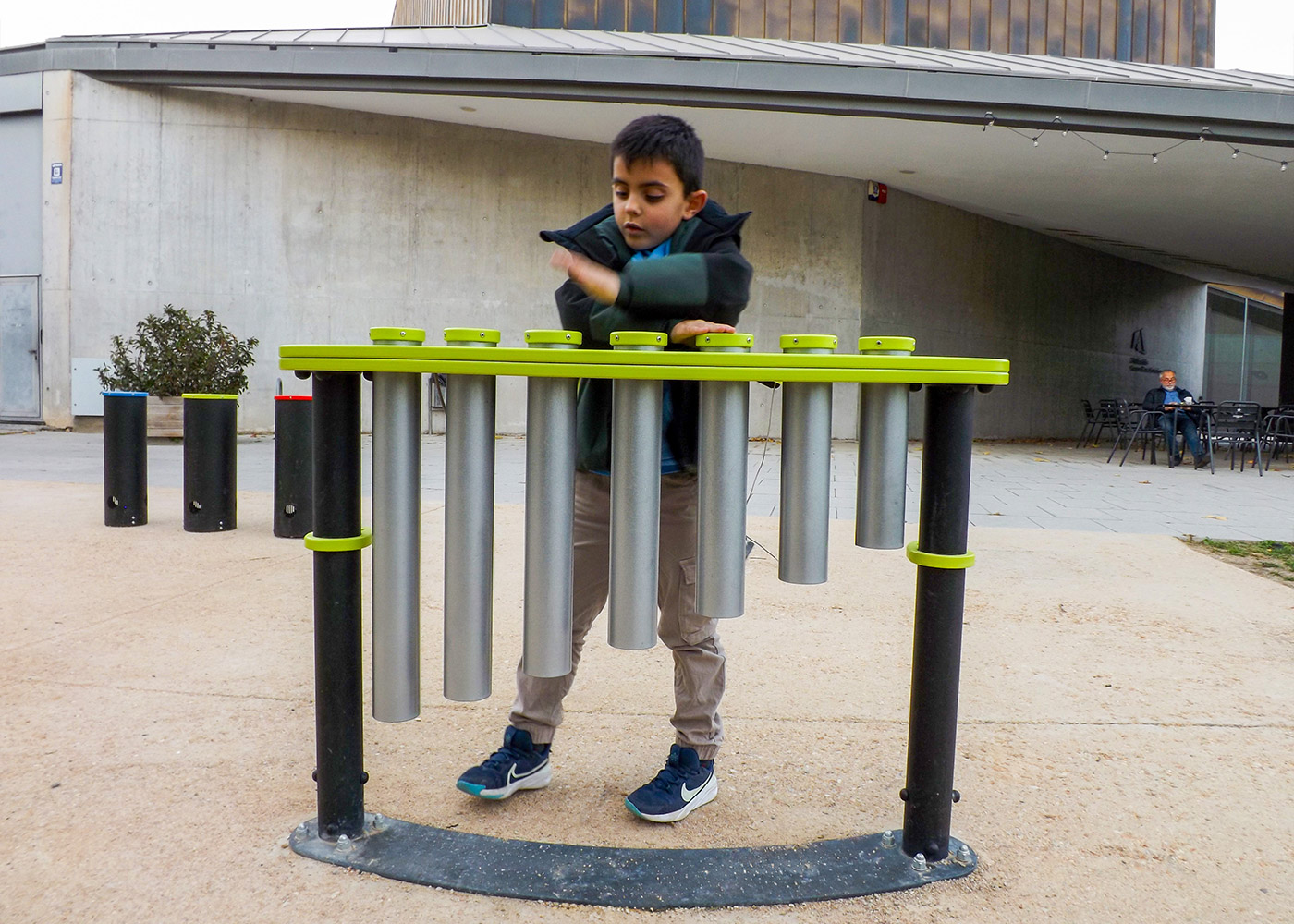 En el parque se han instalado cinco elementos musicales urbanos: Xilo, Mambo, Samba, Conga y Salsa, cada uno de ellos diseñado para estimular la percepción auditiva, el ritmo y la coordinación a través de la interacción directa. Estos instrumentos permiten que los niños exploren melodías y ritmos de forma intuitiva y divertida, convirtiendo el espacio público en un entorno educativo abierto y accesible.
