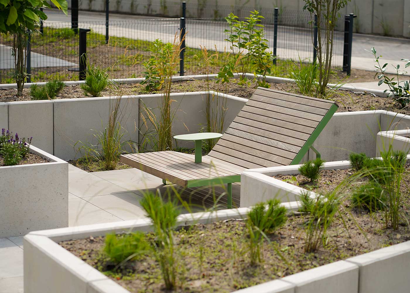 Las tumbonas dobles PIRO, de la colección Benito Design+, transforman una zona residencial en Łódź (Polonia) en un espacio verde y confortable, pensado para el descanso compartido.