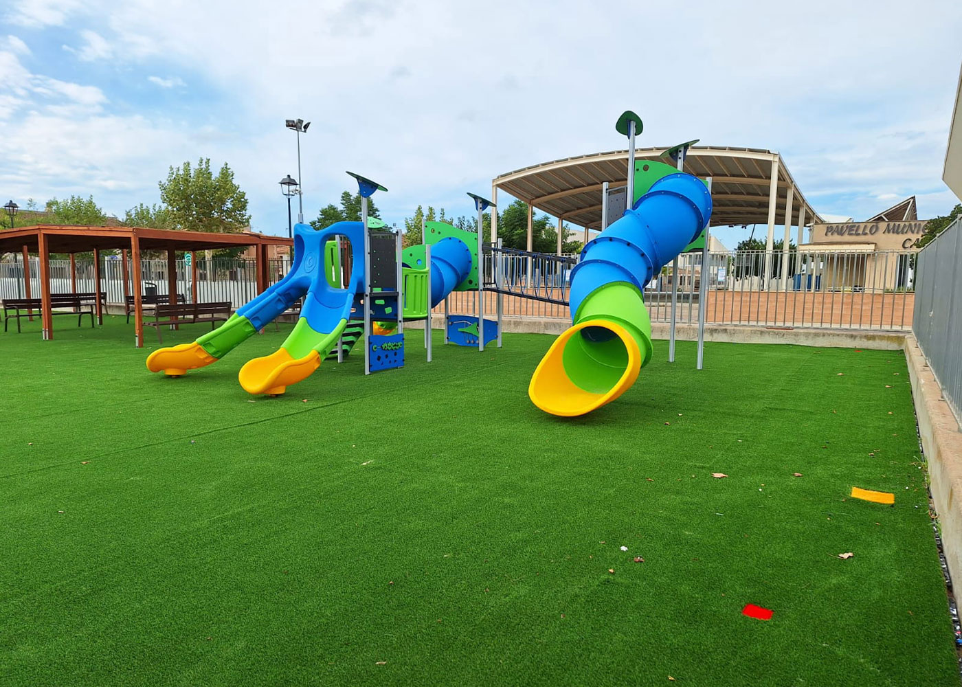 INTROPDF## En el municipio de Consell, en Mallorca, se ha renovado un parque vallado con todo lo necesario para que los niños jueguen mientras los adultos descansan en los bancos protegidos por un porche con sombra.