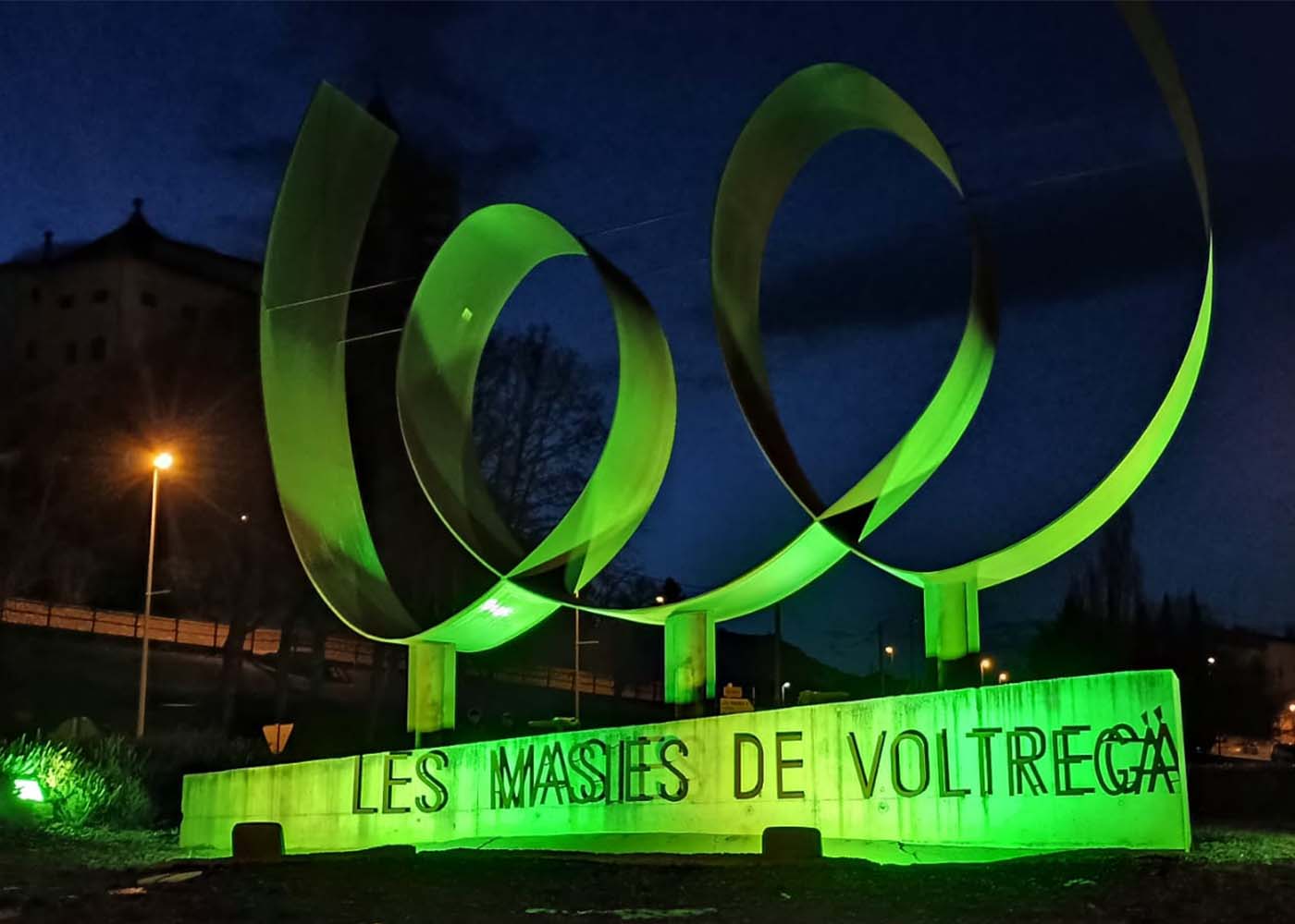 En la rotonda de entrada al municipio de Les Masies de Voltregà (Barcelona) hay una pieza de aspecto escultórico de bienvenida con el nombre de la población. Para que sea más visible de noche, se ha instalado un proyecto de iluminación a cargo de BENITO. Se trata de la puesta en marcha de 6 proyectores Milan XL y 2 Milan M con sistema RBGW.