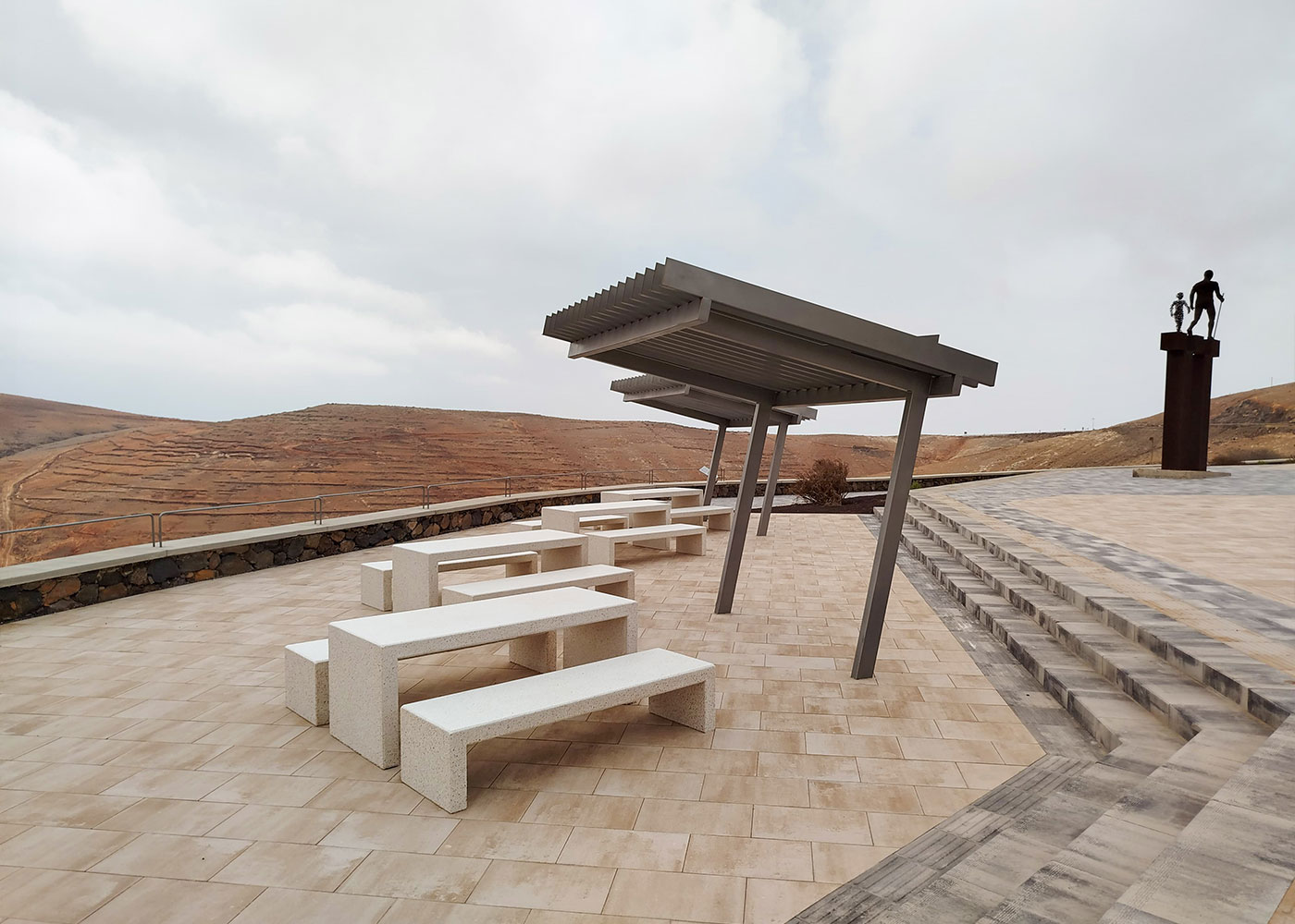 El Mirador del Valle de Santa Inés es un punto panorámico situado en la isla de Fuerteventura, en el municipio de Betancuria, concebido para ofrecer vistas privilegiadas del valle y de su entorno natural. En este enclave se han instalado mesas Kube fabricadas en hormigón blanco, con el objetivo de mejorar la experiencia de los visitantes y poner en valor el paisaje.