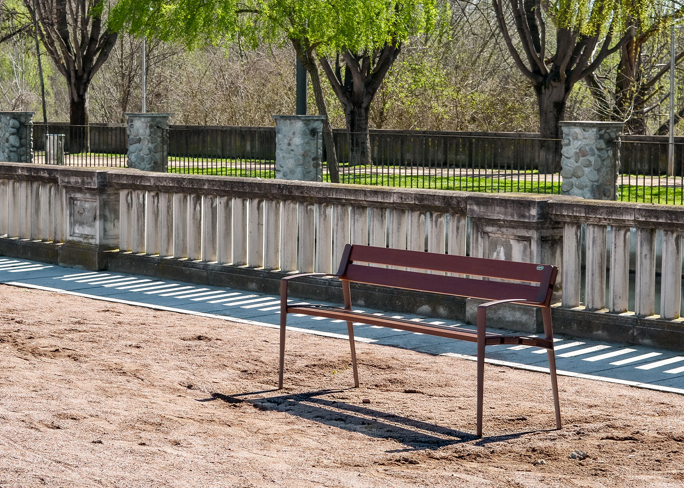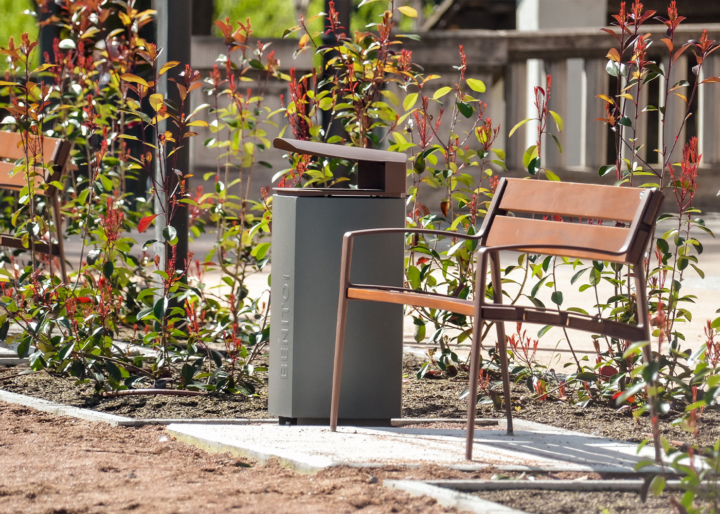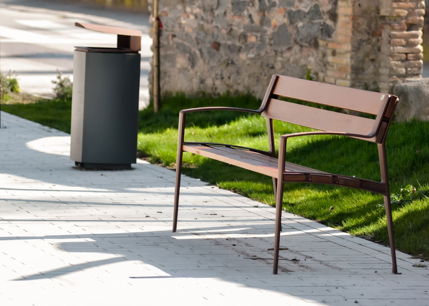 El proyecto se completa con la instalación de bancos Minsk y papeleras Mielek en color marson, generando una imagen coherente y adaptada al entorno natural del paseo.