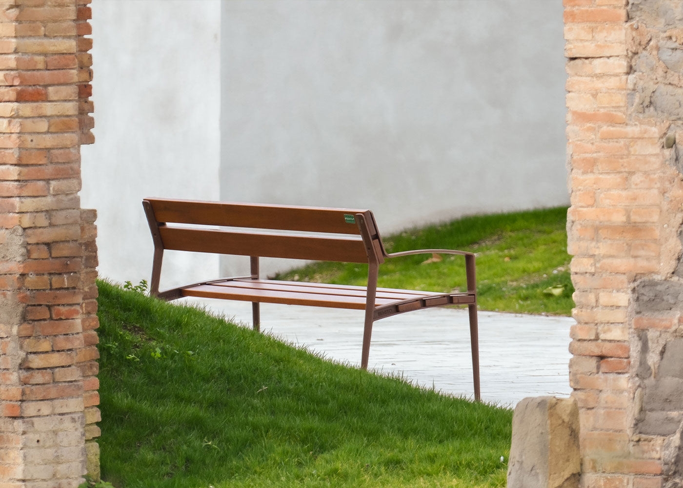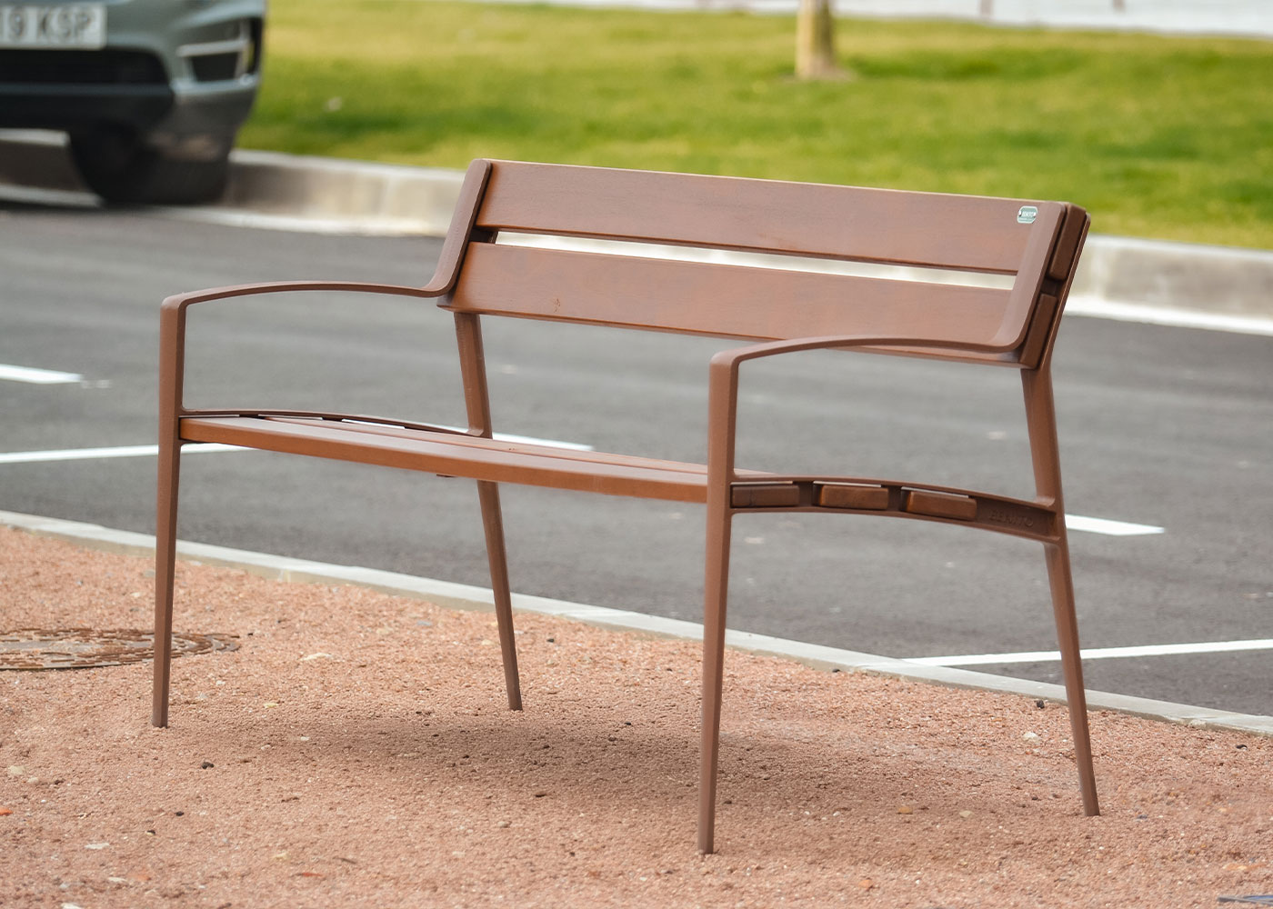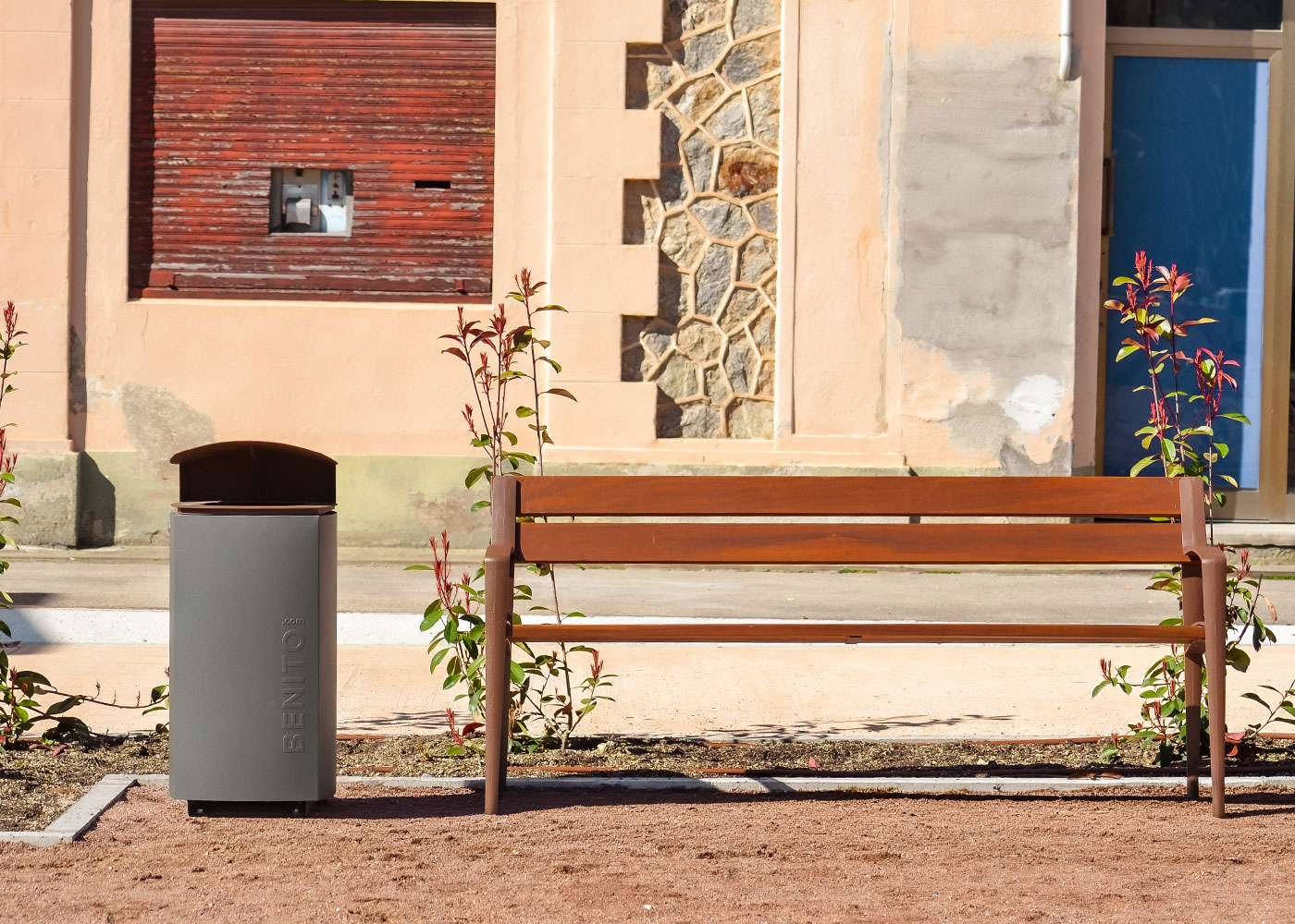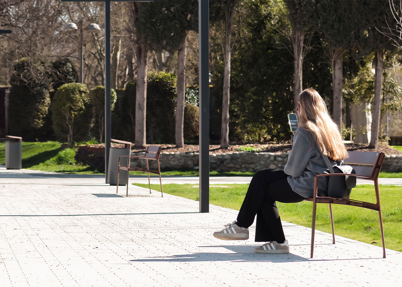 El proyecto se completa con la instalación de bancos Minsk y papeleras Mielek en color marson, generando una imagen coherente y adaptada al entorno natural del paseo.