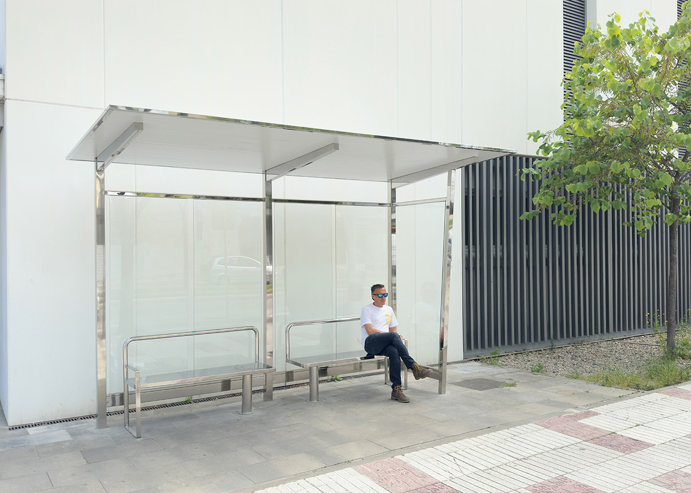 Gracias a su diseño moderno, la marquesina STIL se integra perfectamente en el entorno, ofreciendo una protección eficaz frente a la lluvia o el calor intenso, a la vez que mejora la imagen urbana del entorno.