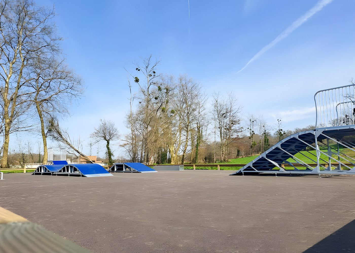 Ubicado en un parque natural, el skatepark se integra en un entorno verde, promoviendo un estilo de vida activo y sostenible. Esta iniciativa refleja el compromiso de la comuna de Pouillon con el bienestar de sus habitantes, ofreciendo espacios de ocio sin perder el contacto con la naturaleza.
