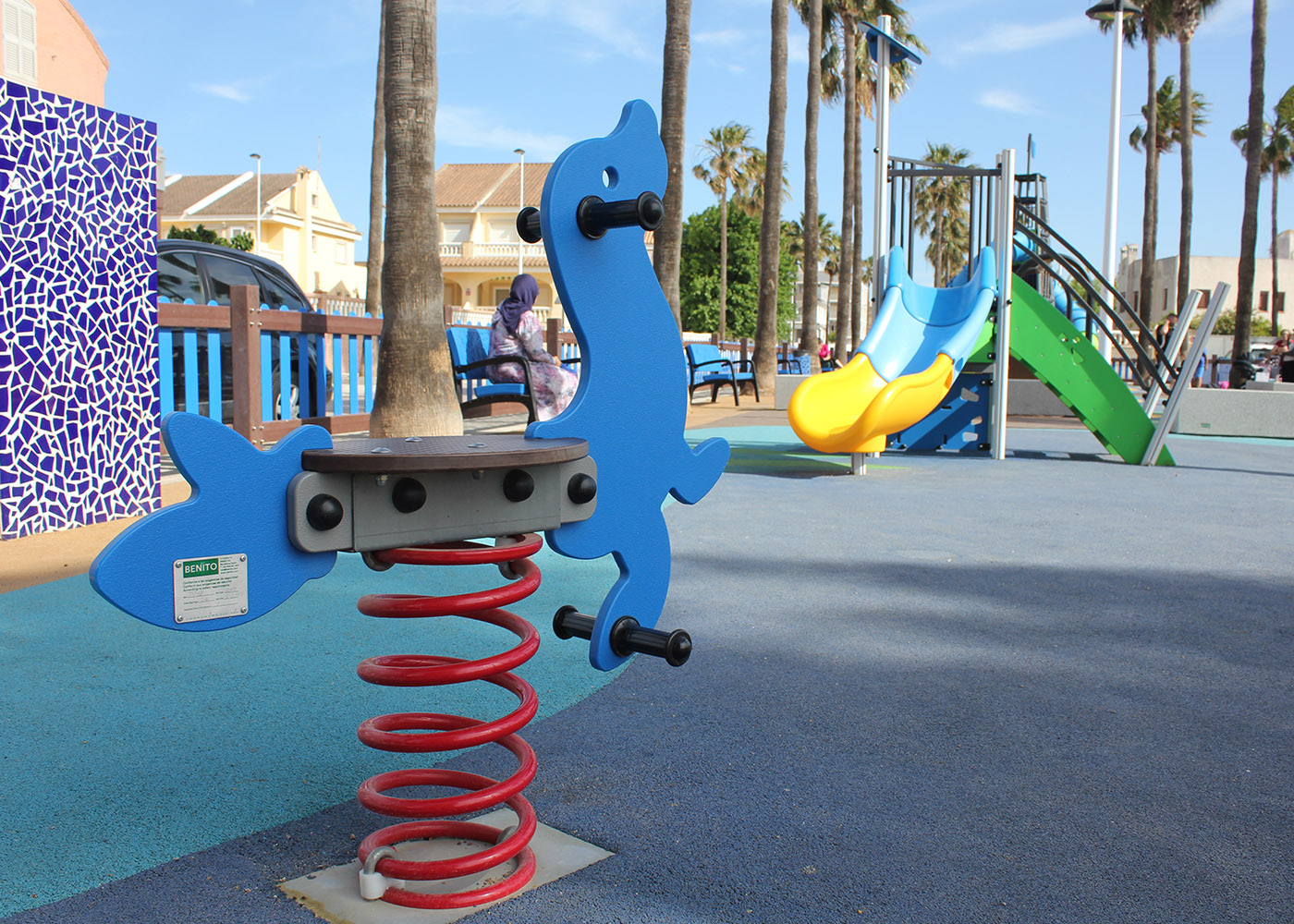 Además de los juegos infantiles, se ha instalado un pavimento de caucho, bancos y un vallado, con lo que El Perelló ha ganado una nueva zona para el disfrute de las familias.