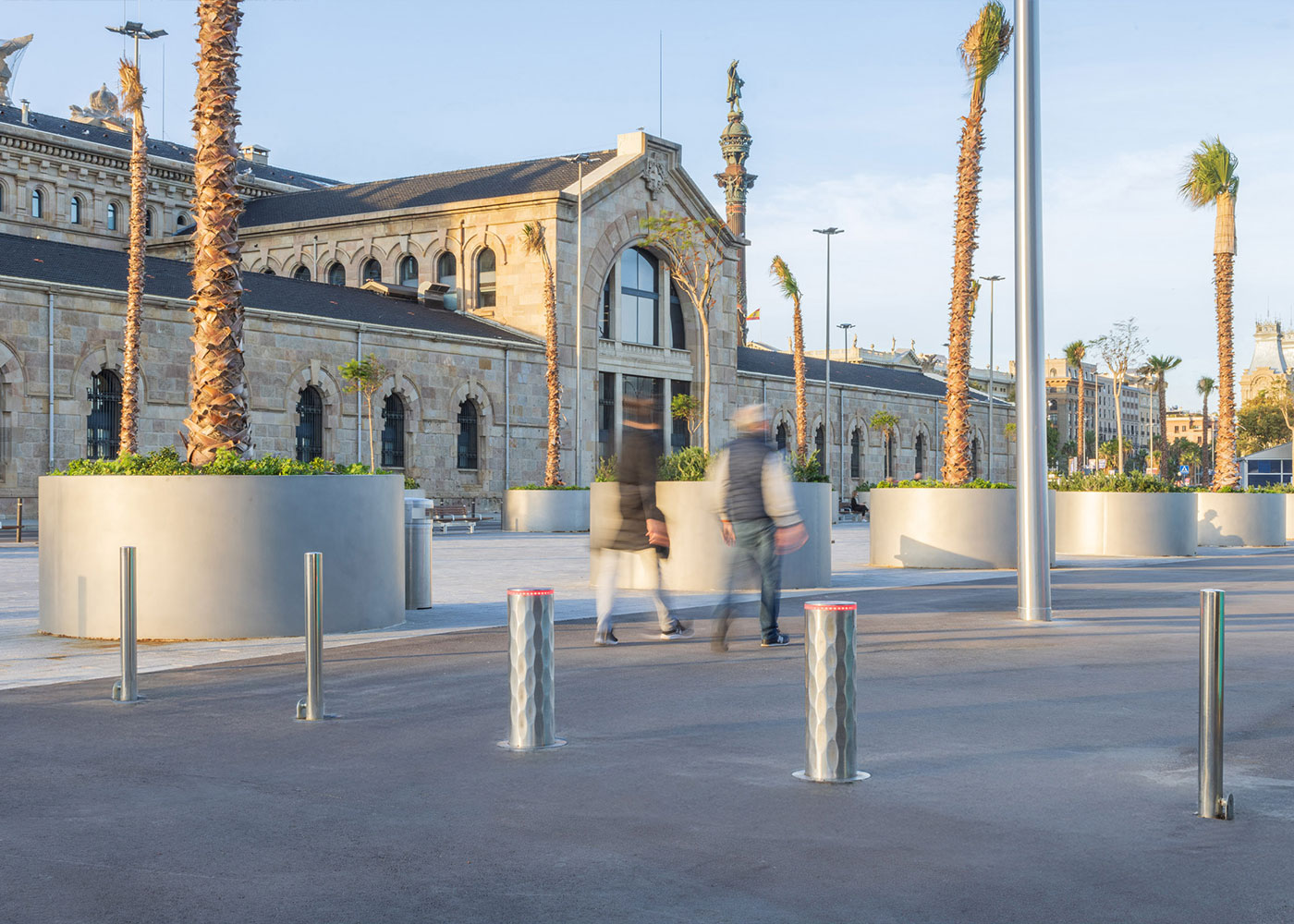 Instalación de pilonas automáticas RAMBLA en el Port de Barcelona para controlar el acceso vehicular, garantizando seguridad sin renunciar al diseño e integración estética del entorno.
