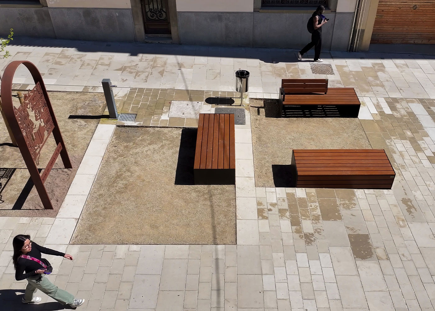Transformación de la avenida Sant Salvador en Badalona en un eje verde peatonal, con mobiliario VERMUT de diseño especial que favorece la estancia y el uso cotidiano del espacio